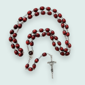 Traditional Italian walnut wood Catholic rosary necklace with large smooth beads and a detailed crucifix, created for daily prayer, meditation, and meaningful religious gifting. Suitable for men and women, this natural wooden rosary can be worn, displayed in a car, or placed on a home altar as a timeless expression of faith and devotion.