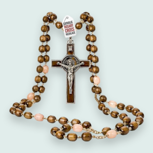 Italian Walnut Wood Catholic Rosary Necklace – Large Bead Prayer Gift