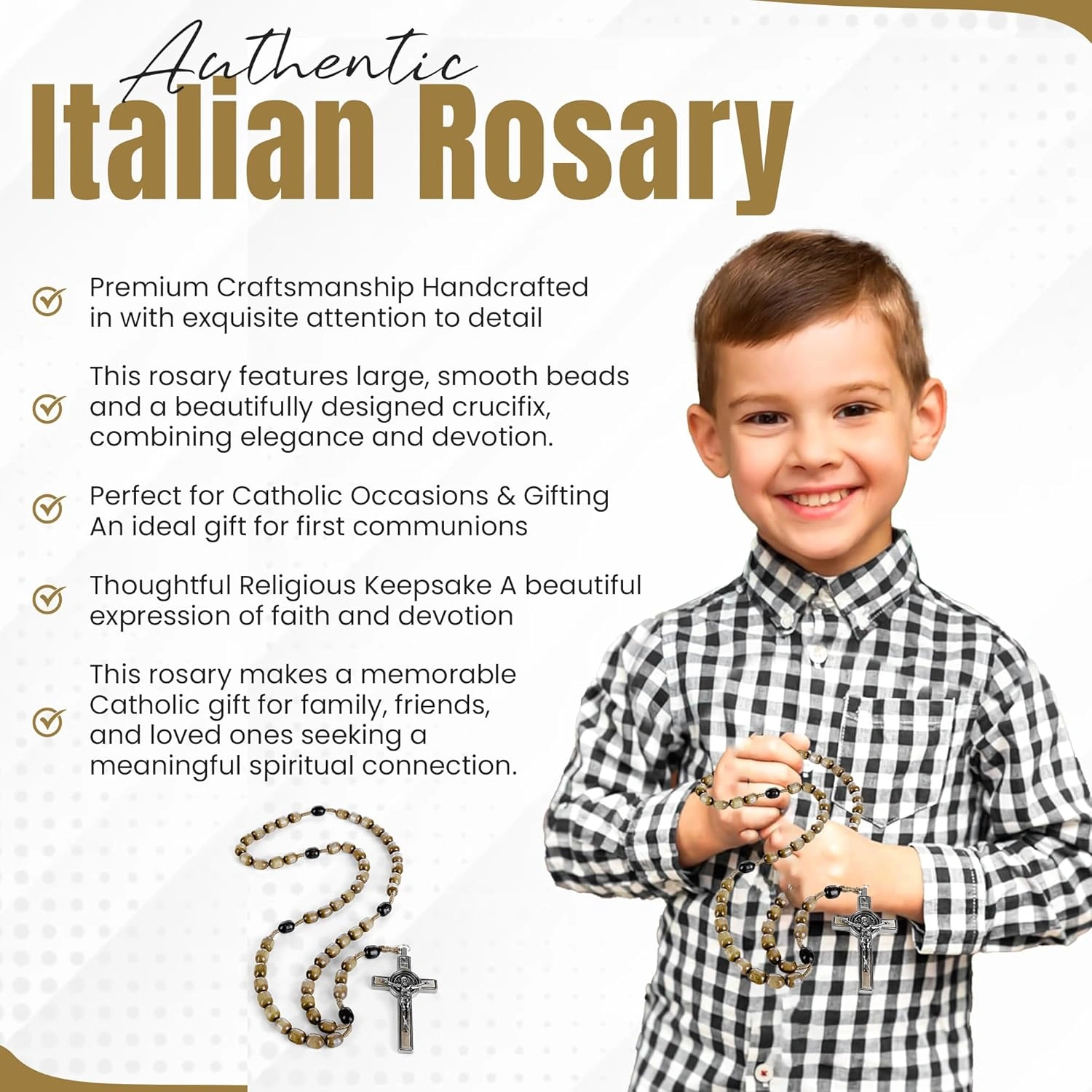 Catholic Rosary Necklace Italian Olive Wood – Large Bead Prayer Gift