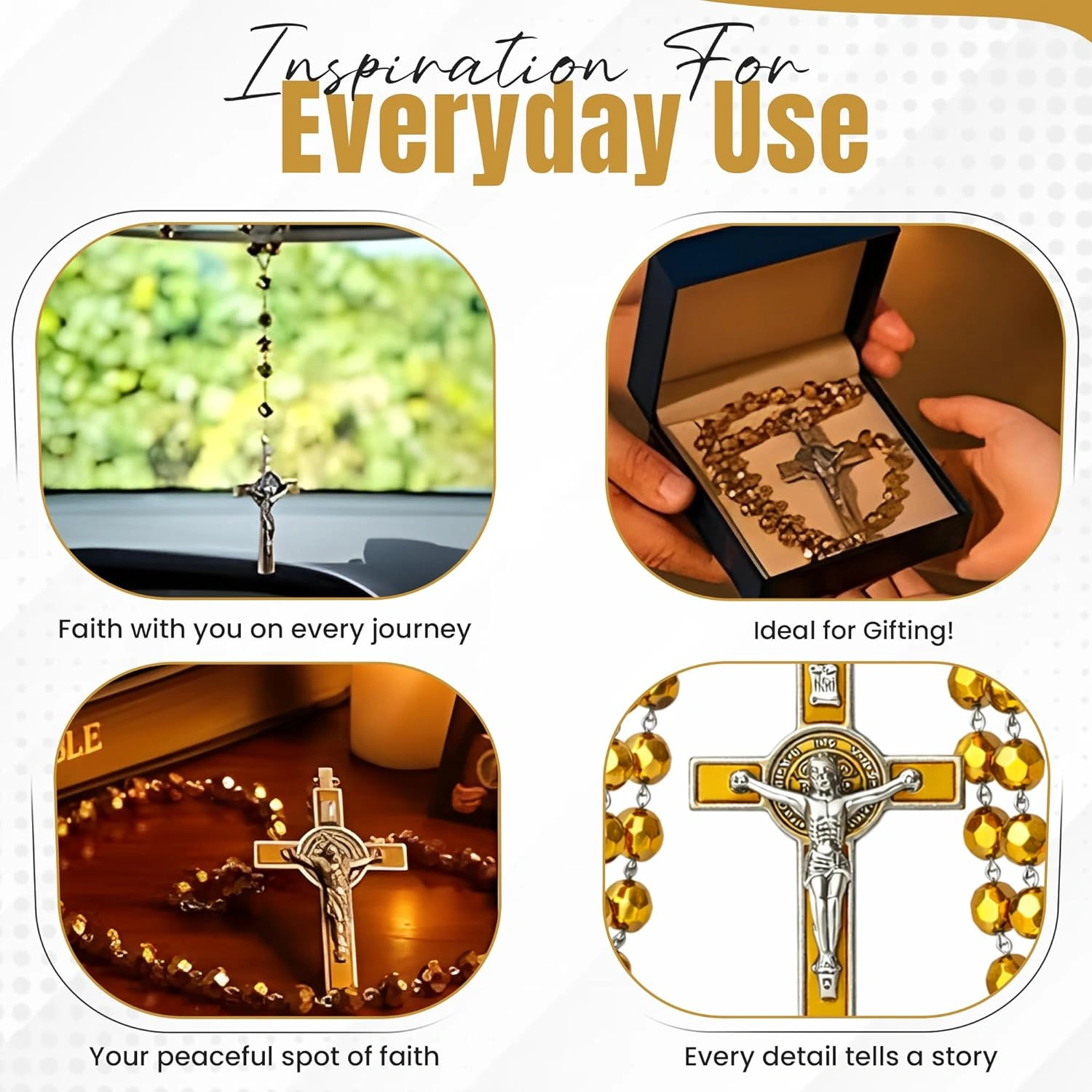 More than jewelry, this gold crystal Catholic rosary represents devotion, hope, and spiritual strength. It serves as a reminder to keep prayer close while sharing faith with others.
