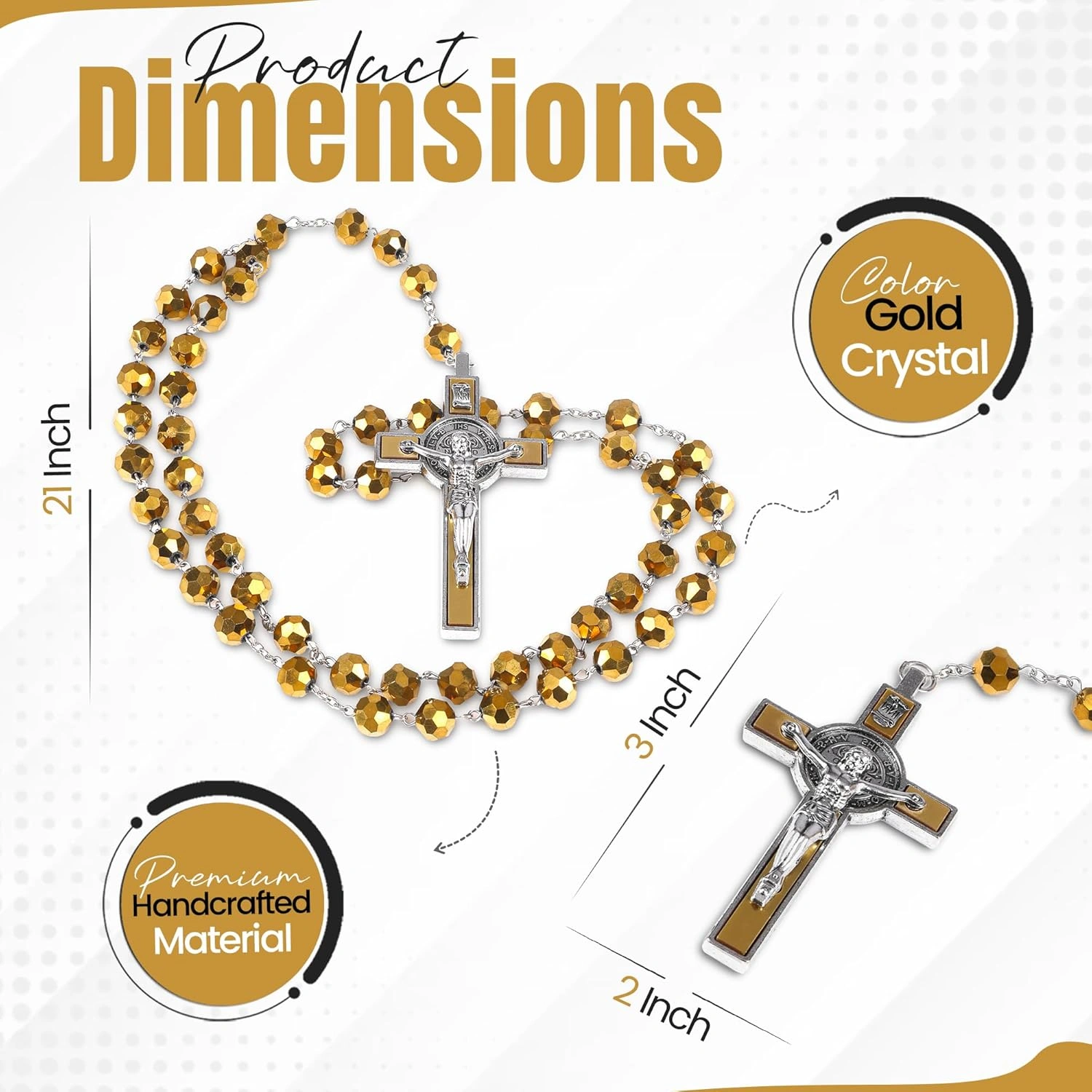 Catholic Rosary Necklace Gold Crystal Beads – Prayer Gift for Men & Women
